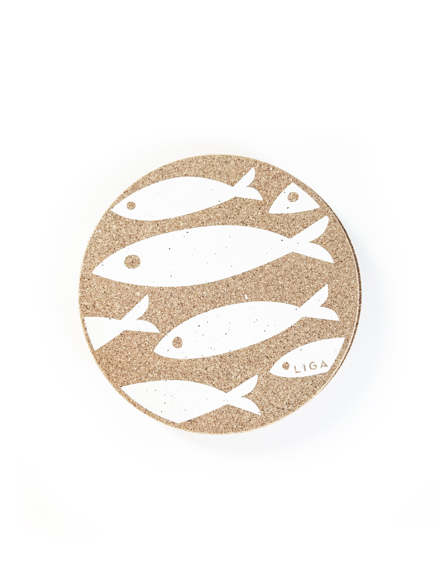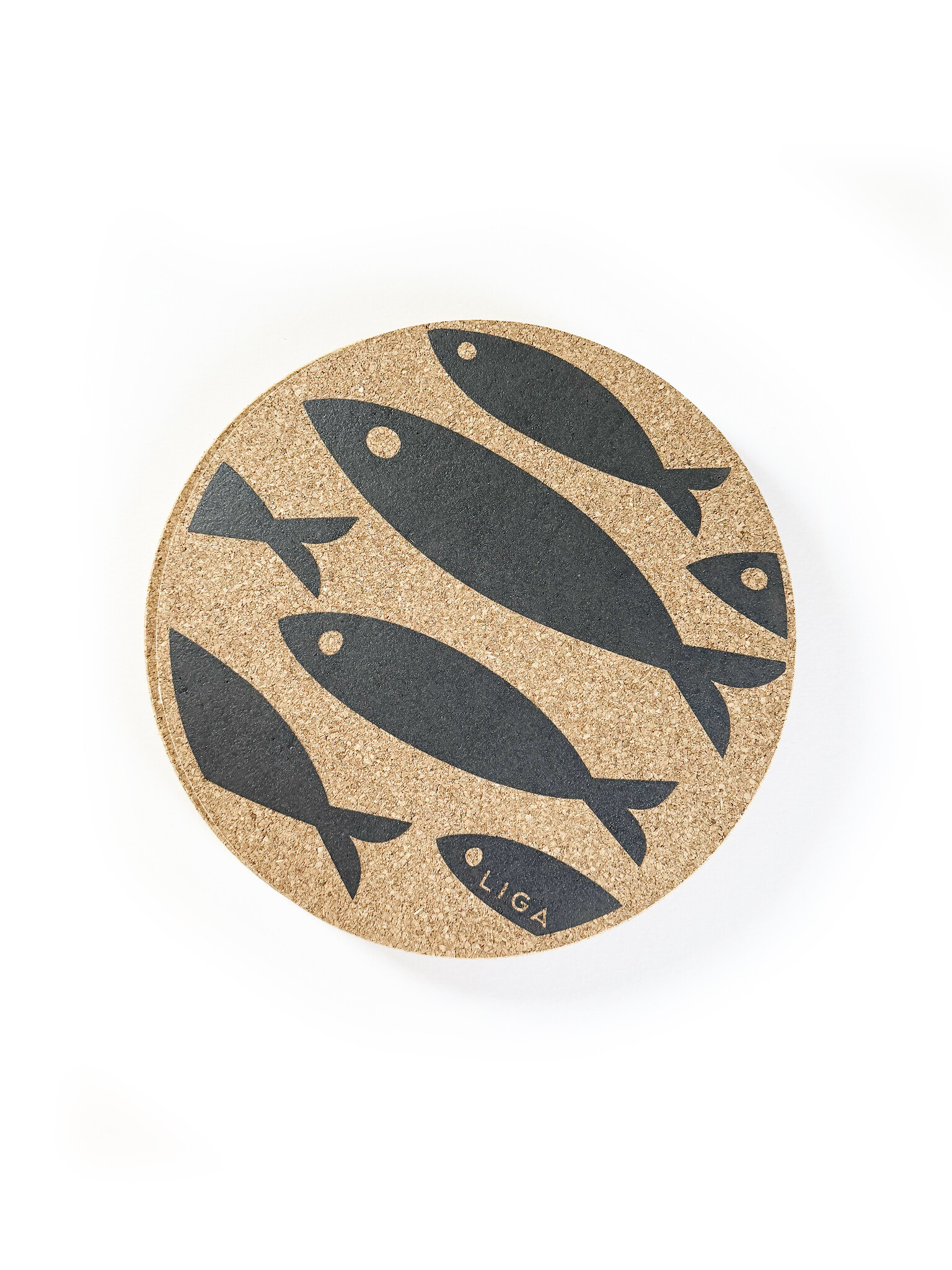 These single Liga Cork Round Trivets are made from organic Portuguese cork and screen printed in Cornwall, England. Choose from a white or charcoal fish print.