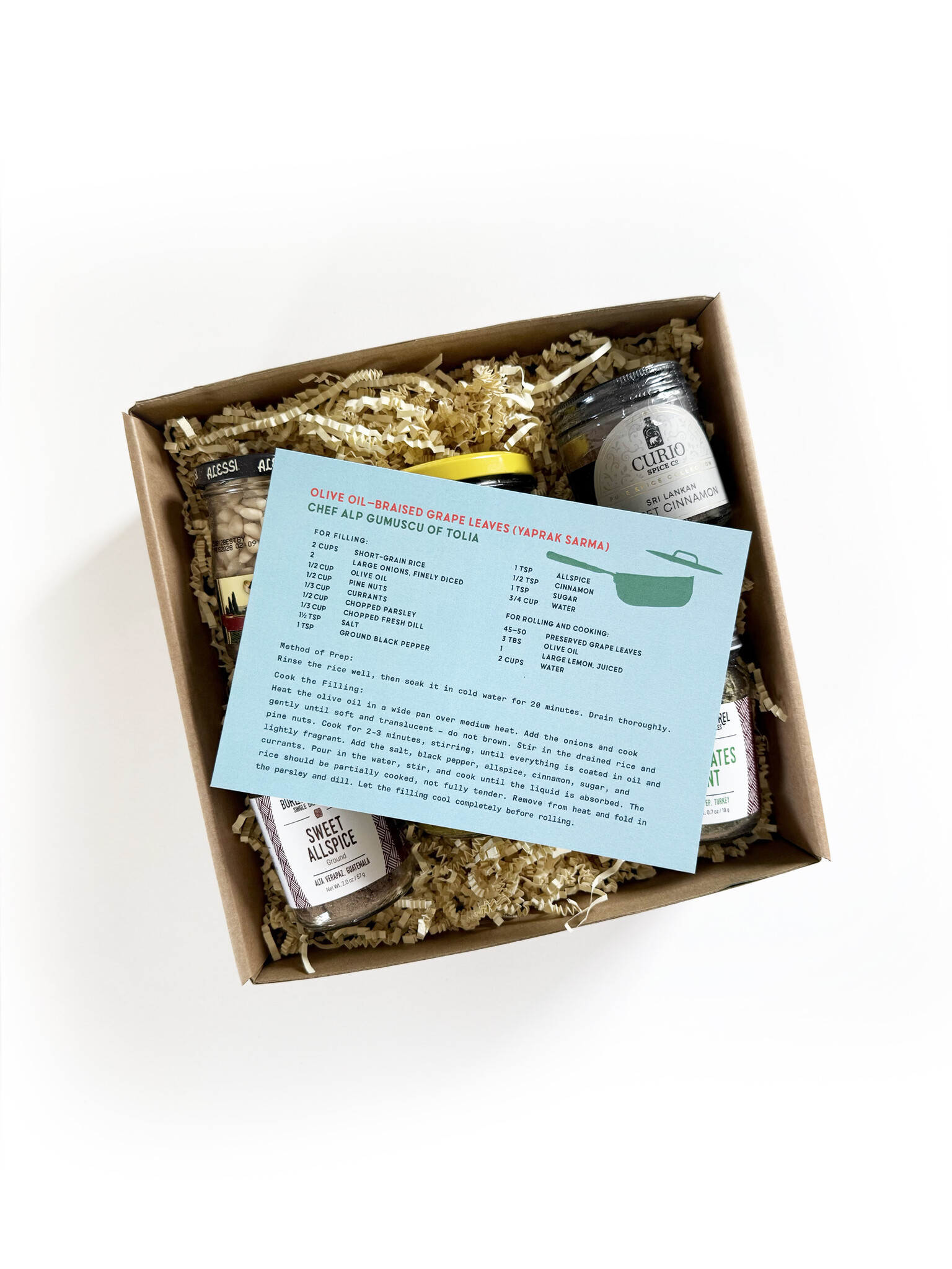 Create Tolia's Olive Oil Braised Grape Leaves (Yaprak Sarma) at home! These gift boxes are inspired by the chefs at Providence's food hall Track 15, and our Station Tastings cooking demo series.